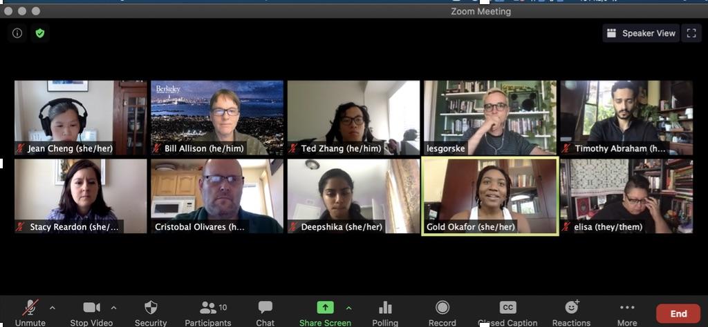 The new CTO grant program received many proposals, and to review them carefully, we assembled a strong committee reflecting the range of Berkeley’s disciplines, administrative areas and people. The review committee completes its evaluation of proposals in June. The first meeting allowed people to meet each other and check-in, discussing norms and evaluation criteria. The first meeting also introduced the committee to a review framework developed by the CTO and key innovation program advisors. As Cristóbal Olivares noted, “we want an approach that balances head and heart– so the committee can start with a quantitative overview– but also be able to act on how they feel about proposals.” The committee evaluated proposals based on criteria such as creativity, equity, impact and risk. After a first meeting on June 5th, the members left with copies of all the proposals and the evaluation matrix.